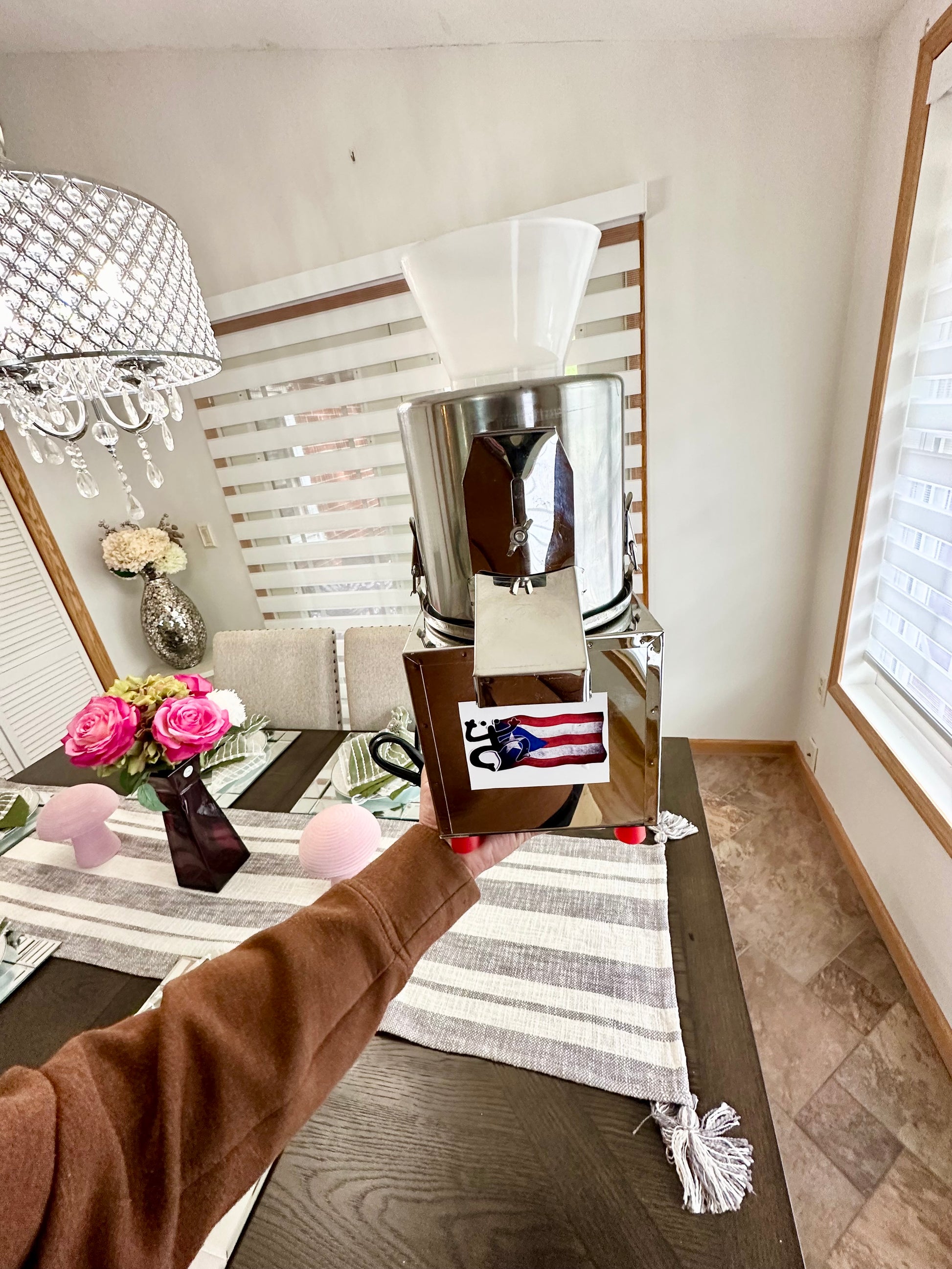 Beautiful and elegant. This machine is compact in size but it can produce small or large batches. Ideal for small or large quantities of grinding masa.