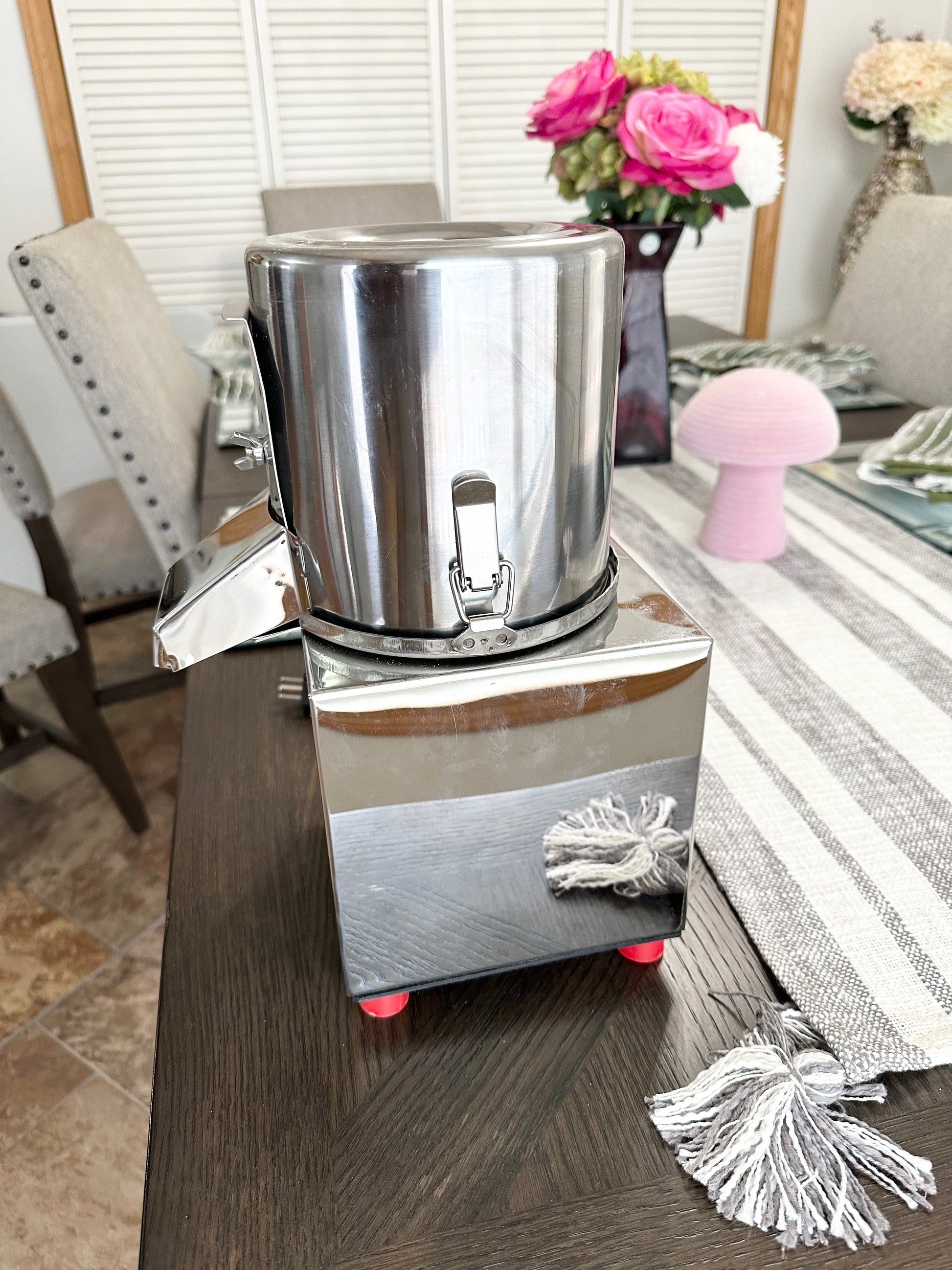 1. NOTE: TURN ON THE MACHINE BEFORE PUTTING ANY VEGETABLES INSIDE THE MACHINE