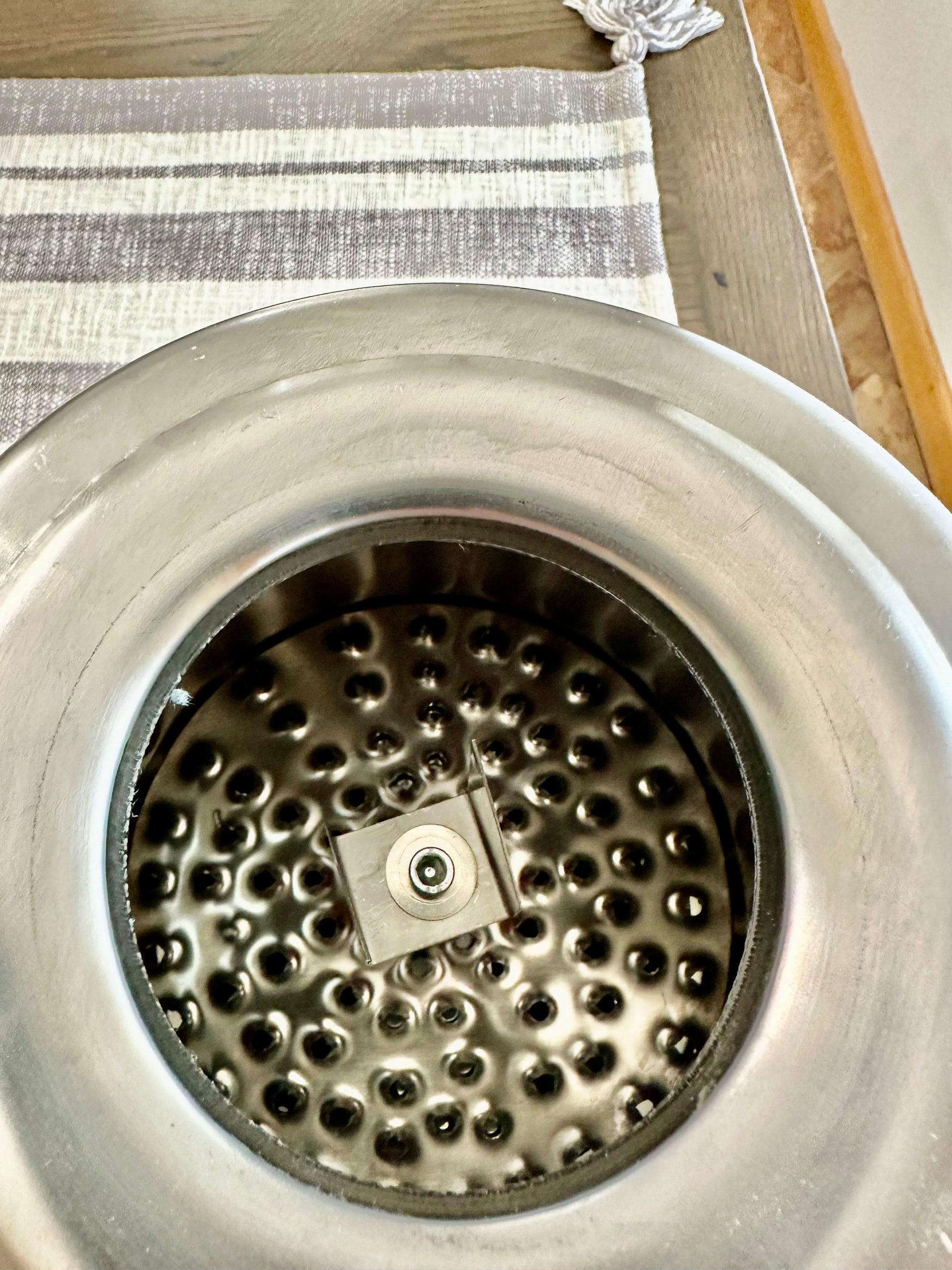 2. Remove the guayo/blades center by loosening the center thumb screw and wash it with a brush outside the machine very carefully..